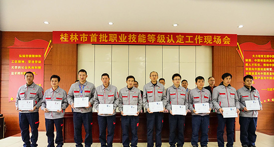 桂林福达股份有限公司作为技能人才评价改革试点企业,首批评价合格的一线职工获颁职业技能等级证书。