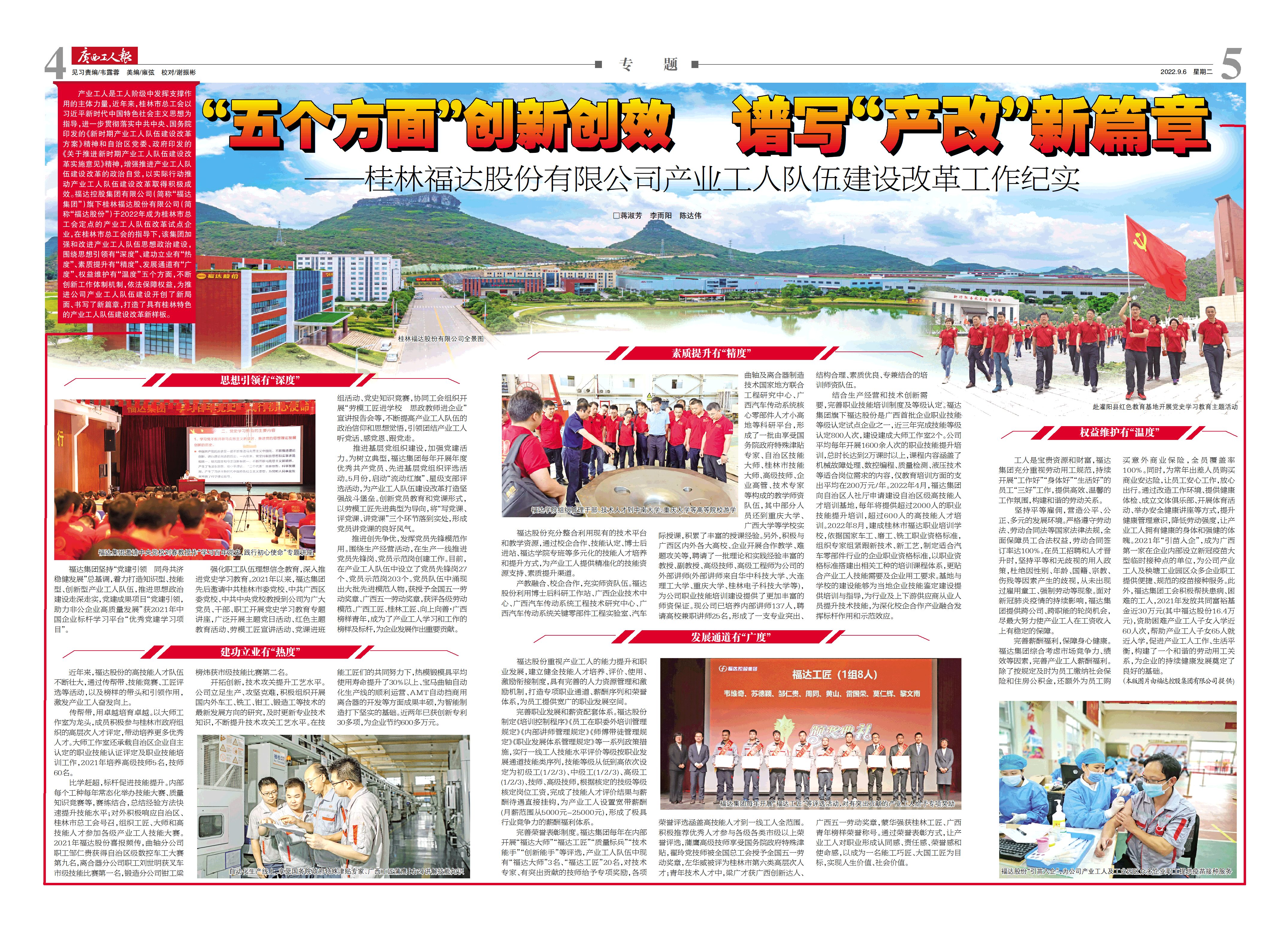 《广西工人报》2022年9月5日专题报道福达股份产业工人队伍建设改革工作