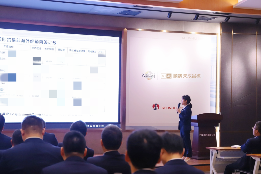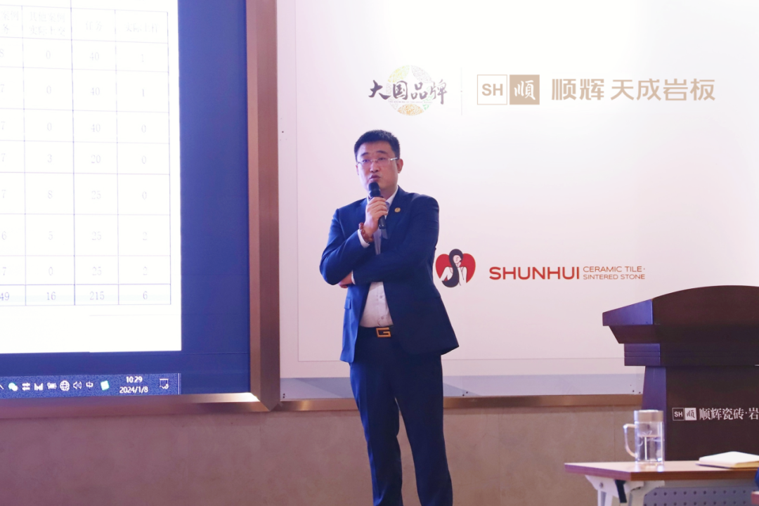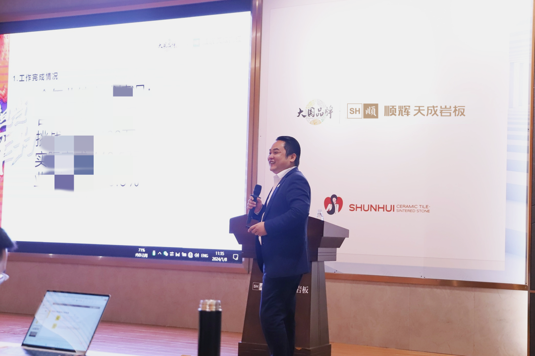承接张总精彩的开场,顺辉天成岩板副总经理冯璐冯总针对国内渠道部2023年度营销工作进行了总结,并鼓励全体销售人员2024年要继续保持冲锋市场的干劲,为实现公司的全年营销目标继续努力。
