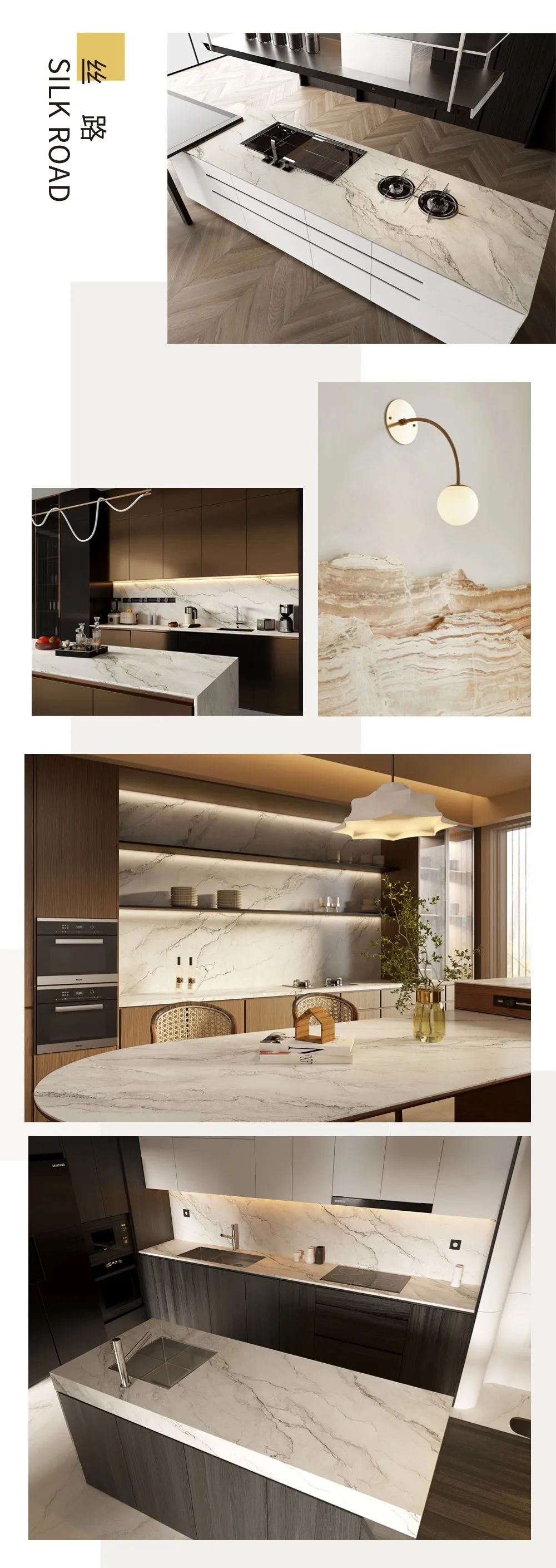 顺辉天成岩板的设计师 以丝路文化为溯源 通过焕新灵感,于岩板之上 细腻地刻画古丝绸之路的风貌 展现出丝路的绵延与壮阔 在相容并蓄中激荡出全新的表达 -