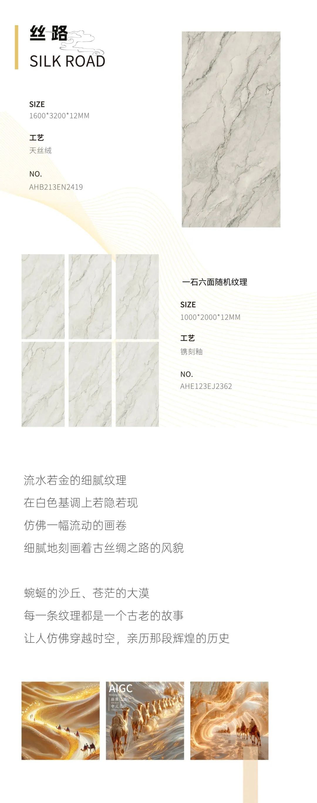 丝路繁华,沙海蜃景 佛土神圣,岁月波澜 在厚重与灵动交融中 再现古丝绸路之文化精粹 理石系列Marble series|丝路