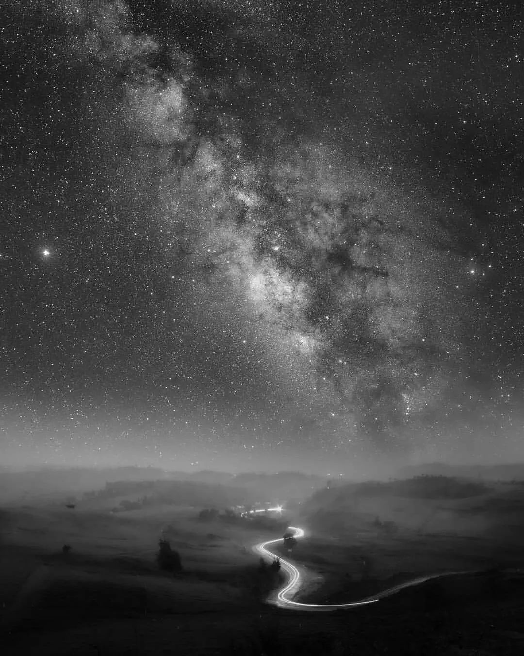 Resembling the winding and rolling Milky Way faintly visible, connected into lines