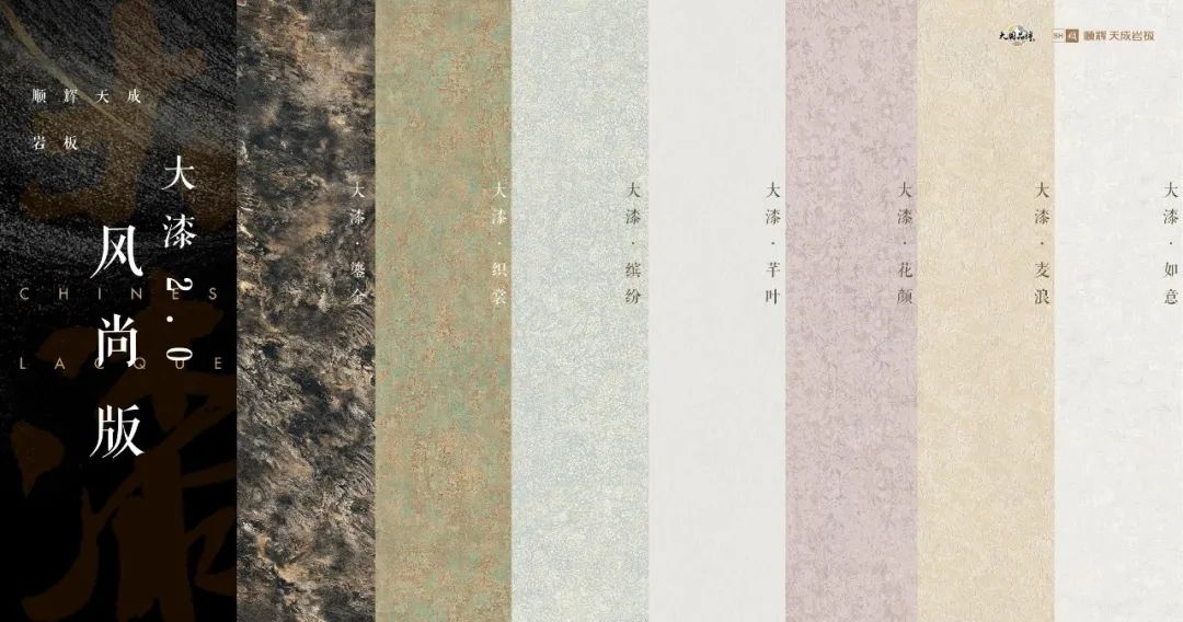 • 风尚大漆 漆色姿态·潮流百态 - 大漆作为历代宫廷的贡品,其工艺精细繁琐,艳色千年不变。继2020年非遗大漆的经典新生之后,顺辉天成再次以漆为艺术语言,在经典大漆的基础上增添了“自然、时尚、奢华、古典”等现代生活风尚的创作意象。把潮流风格灵感与传统大漆工艺材料相结合,正式研发并推出第二代「风尚大漆」系列。 - — 顺辉天成岩板 大漆风尚系列 -