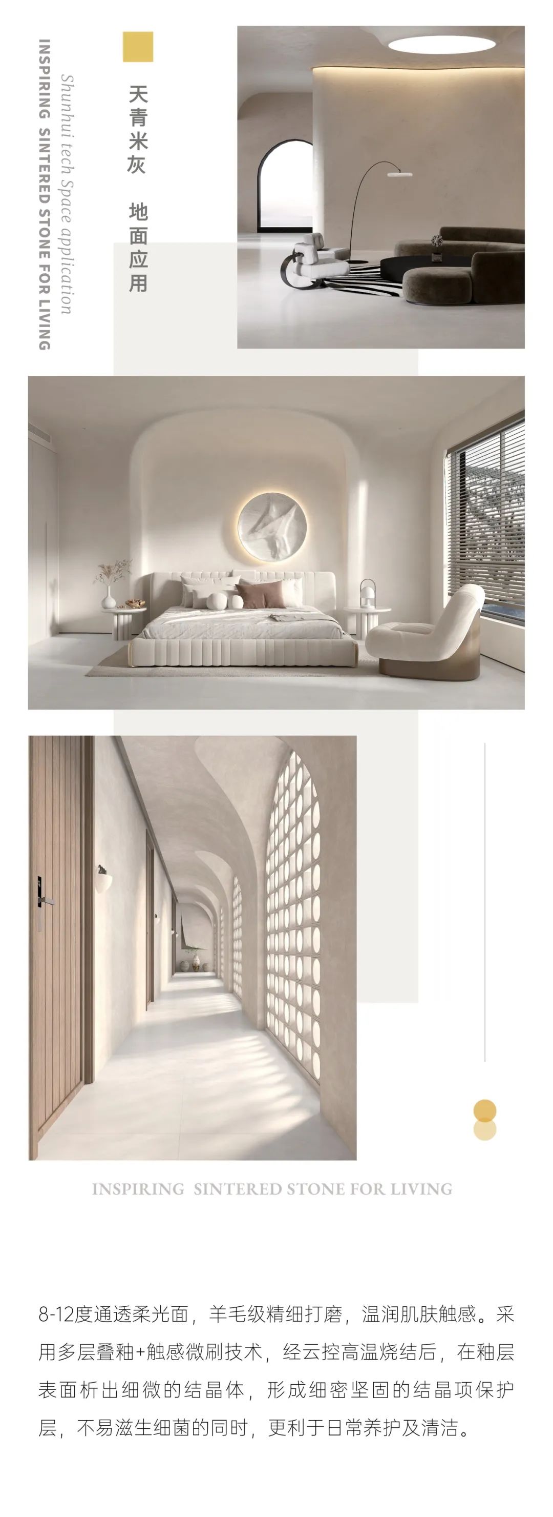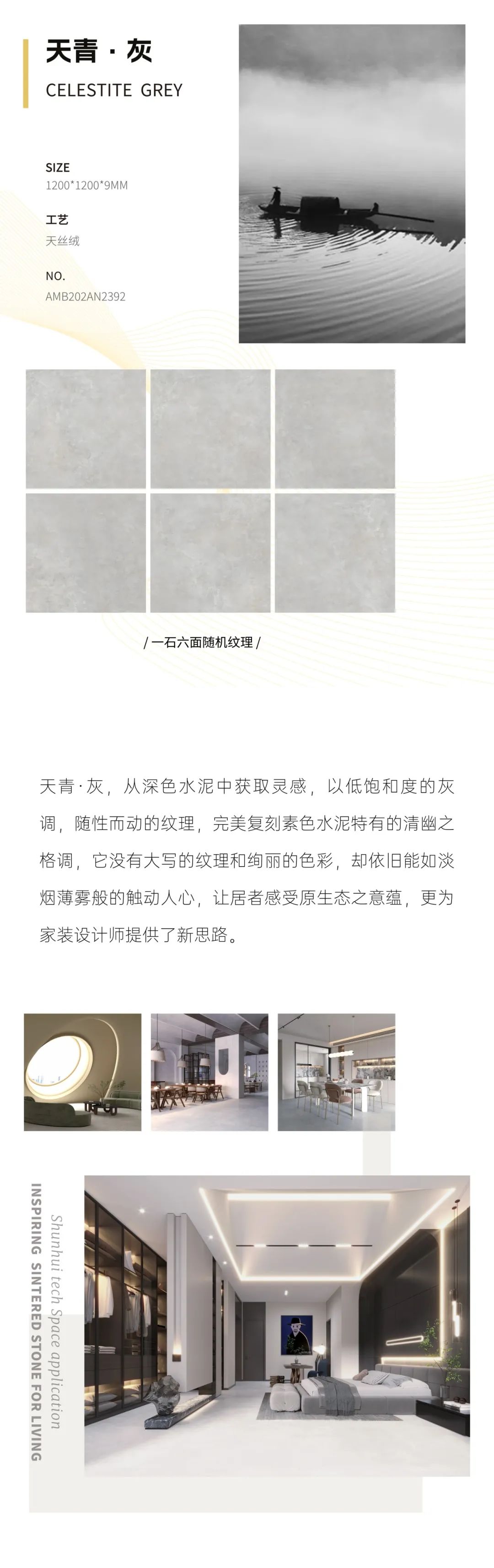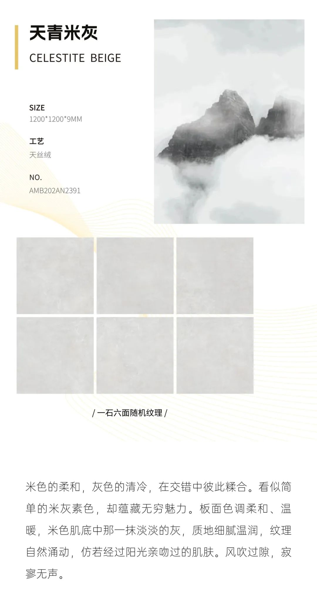 不拘异同,辉映优雅,1200*1200*9mm方正比例,突破传统长方形规格所带来的审美疲劳,给人以平衡与和谐美感。在运输和入户方面解决了传统大规格岩板入户难的问题,铺贴施工更加简单,尽显和谐之美。