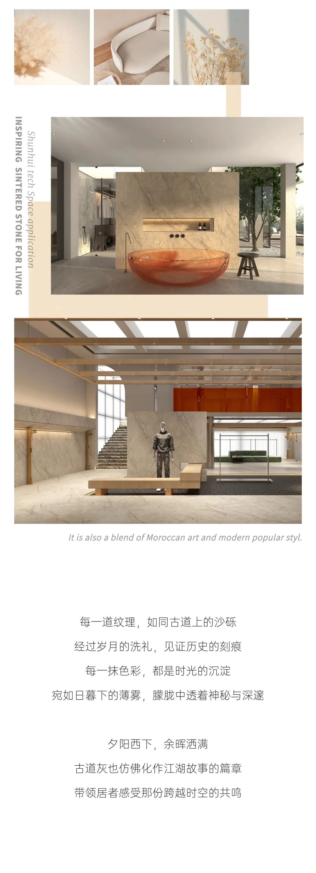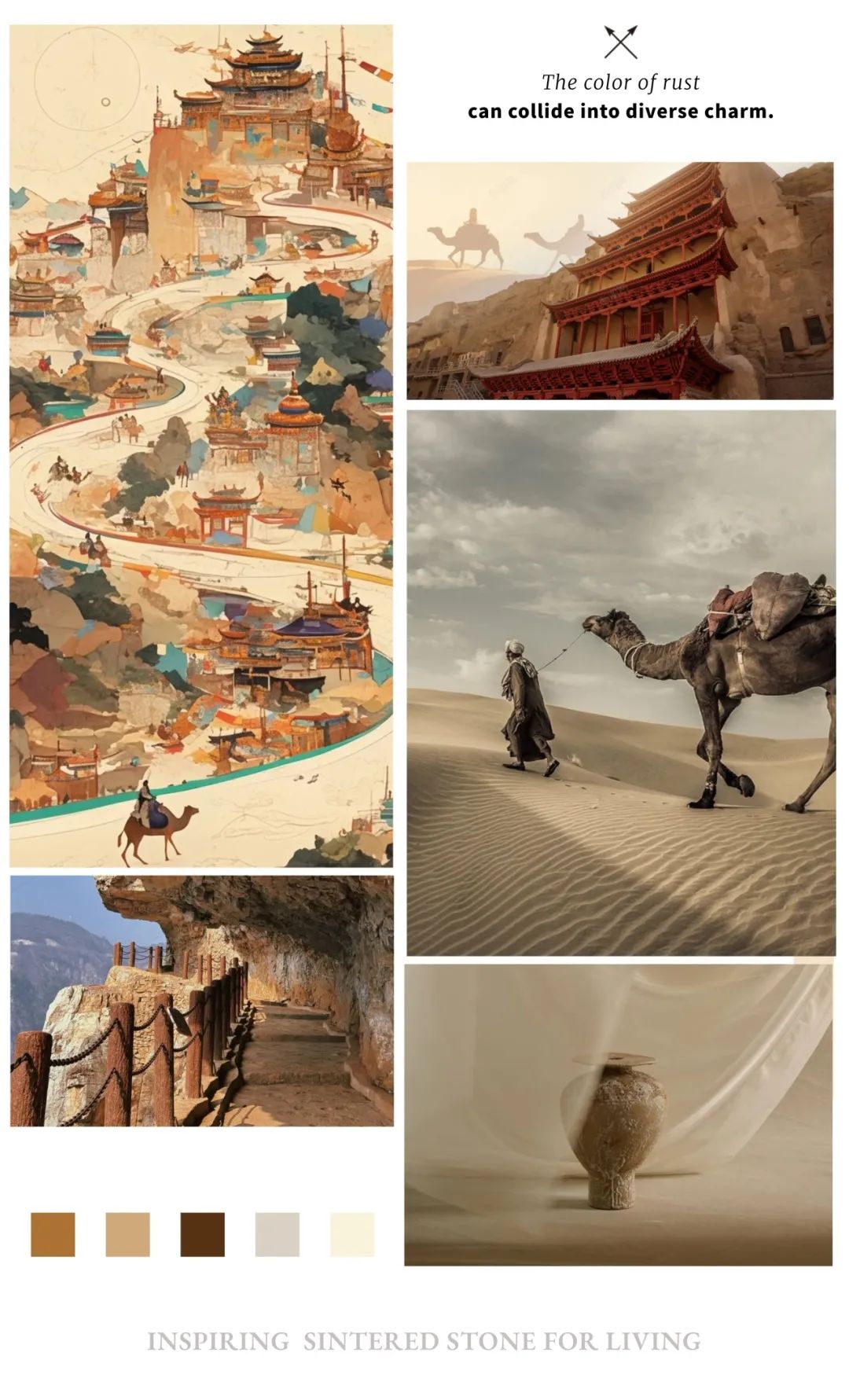 大地是造物者的画布 色彩是风格的灵魂... 顺辉天成岩板的设计师们 以几近湮灭的历史尘烟“古道”为灵感 在岩之上镌刻经历风雨洗礼后的本真之美 重绘千年古道之不朽传奇 -