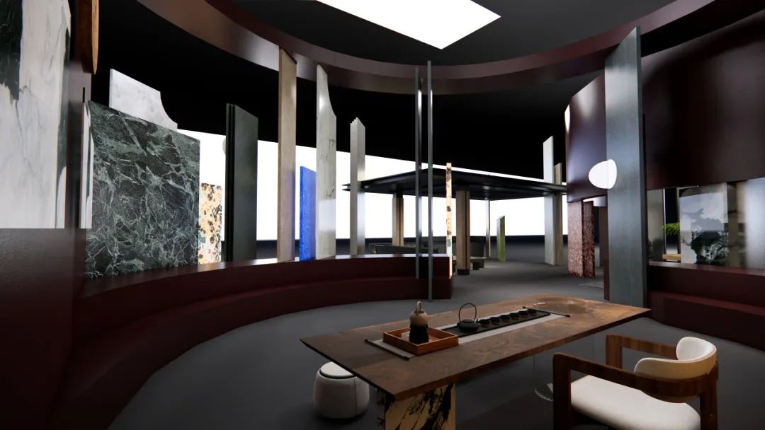 展馆以【流态·年轮】为主题 寓意时间的流动与自然的切片相互交织 如同大漆艺术在历史长河中缓缓流淌 又似树木年轮般记录着岁月的痕迹 整体设计以中国人茶客厅为温馨入口 巧妙将东方茶文化融入各个空间 让踏入者感受时间的流转与自然的和谐共生 与东方美学交织共舞 见证传统与现代的完美交融 感受中国【大漆岩板】的不朽艺术
