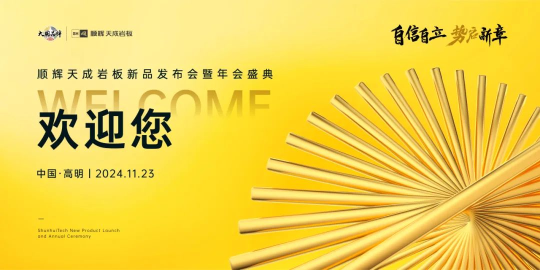 SHUNUHI TECH 他,成立5年 从一个呱呱坠地的婴儿 成长为一个超期蓬勃的少年 一个5年战略的圆满完成 也预示着下个战略的开始 坚持文化自信、坚持民族自信 坚持走自己的路线,依旧是我们的方向 我们相信,只有不断超越自我的努力 才能唤醒梦想,才能共谋时代的新章 11月23日,【自信自立·势启新章】顺辉天成岩板新品发布会暨年会盛典,在佛山高明温德姆酒店隆重举行。 向左滑动查看 来自顺辉天成岩板的核心经销商、服务商,及合作伙伴齐聚岭南, 共议发展之计,共探创新思维,共享星耀盛典,以经验共识、智慧共赢的气势唱响大国品牌顺辉天成岩板下一个五年计划。 Getting betteLEADING THE NEW ERA OF PORCELAIN SLABS