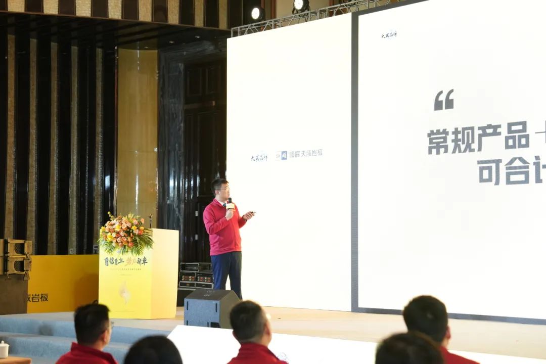 在随后订货政策发布环节中,顺辉天成岩板副总经理 冯璐冯总就2025新品发布会的产品订货优惠政策进行宣讲。冯总指出,行业未来竞争的不仅仅是技术,更多的是产品融合力+落地服务力+客户体验感。未来,顺辉天成岩板将会通过多方式、多渠道,系统化地帮助客户提升核心竞争能力,为渠道赋能共享发展红利。
