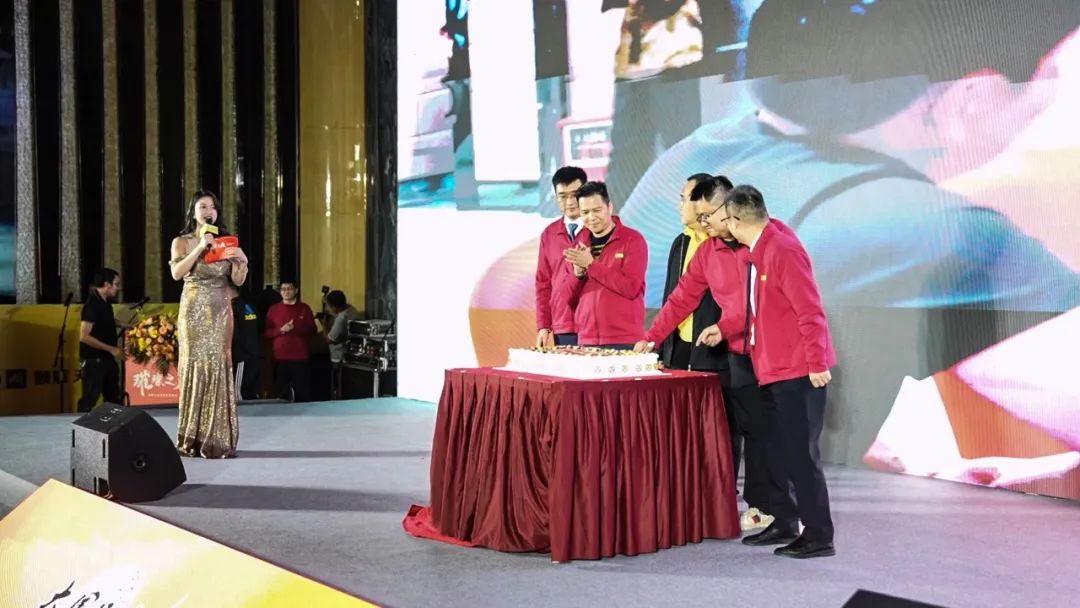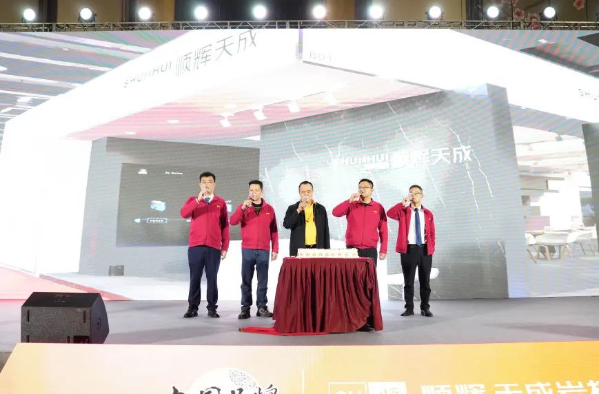 随后,顺成陶瓷集团董事长 梁有福先生、顺成陶瓷集团总裁 梁德云先生、顺辉天成岩板总经理 张海军先生、贝斯特陶瓷有限公司总经理 霍建荣先生、顺辉天成岩板副总经理 冯璐先生,共同切开象征顺辉天成5年发展历程的周年蛋糕,共同举杯祝愿顺辉天成岩板的明天更加灿烂辉煌!