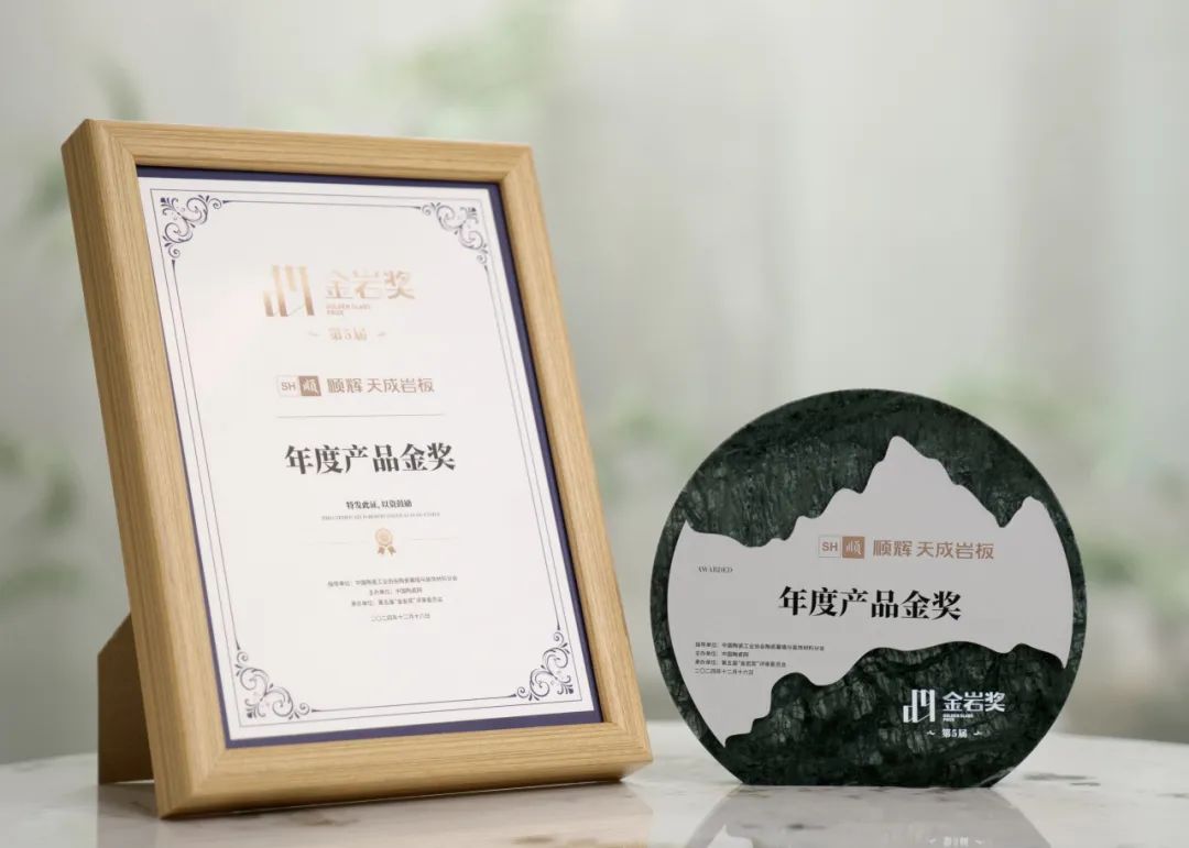 始终以“引领中国岩板未来”为使命,以打造“民族自信、文化自信中国岩板第一品牌”为愿景的顺辉天成岩板,已连续四年蝉联金岩奖荣誉。此次更是斩获“年度产品金奖”这项重量级奖项,不仅仅是对顺辉天成岩板在产品研发、设计、创新和应用等方面的肯定,更是对顺辉天成岩板各项综合实力的高度认可。