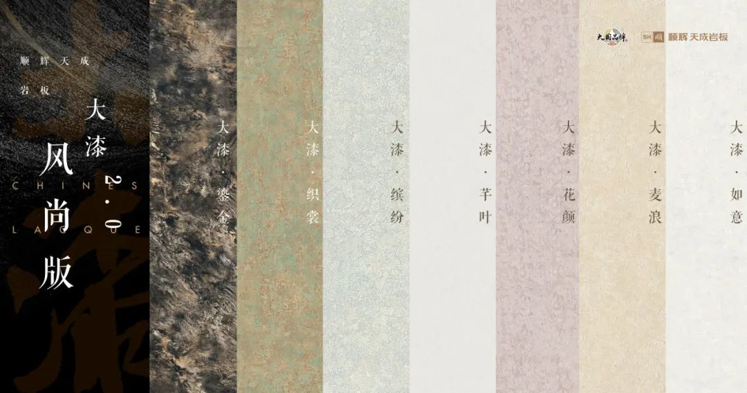 ▲顺辉天成岩板第三代【炫彩大漆】系列