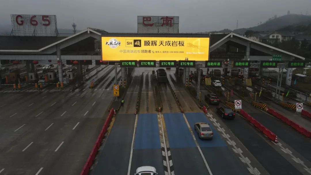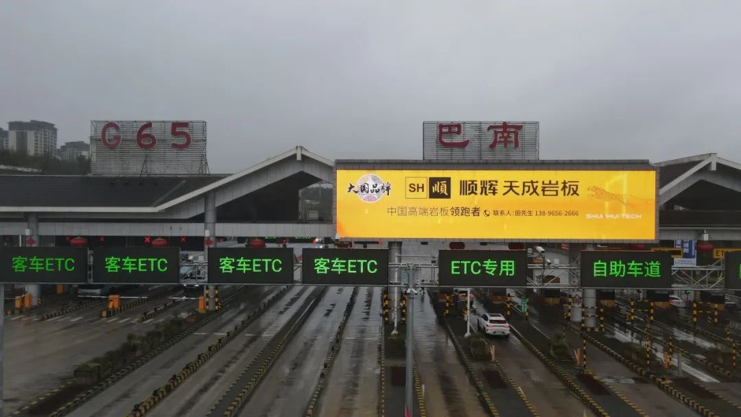 ShunhuiTech's highway advertising is strategically placed, with spots selected at toll stations of G50 Jiangbei, G65 Banan, G65 Banan,and G93 Gaoxin Expressways, plus a high-rise billboard at Jinshan Interchange.