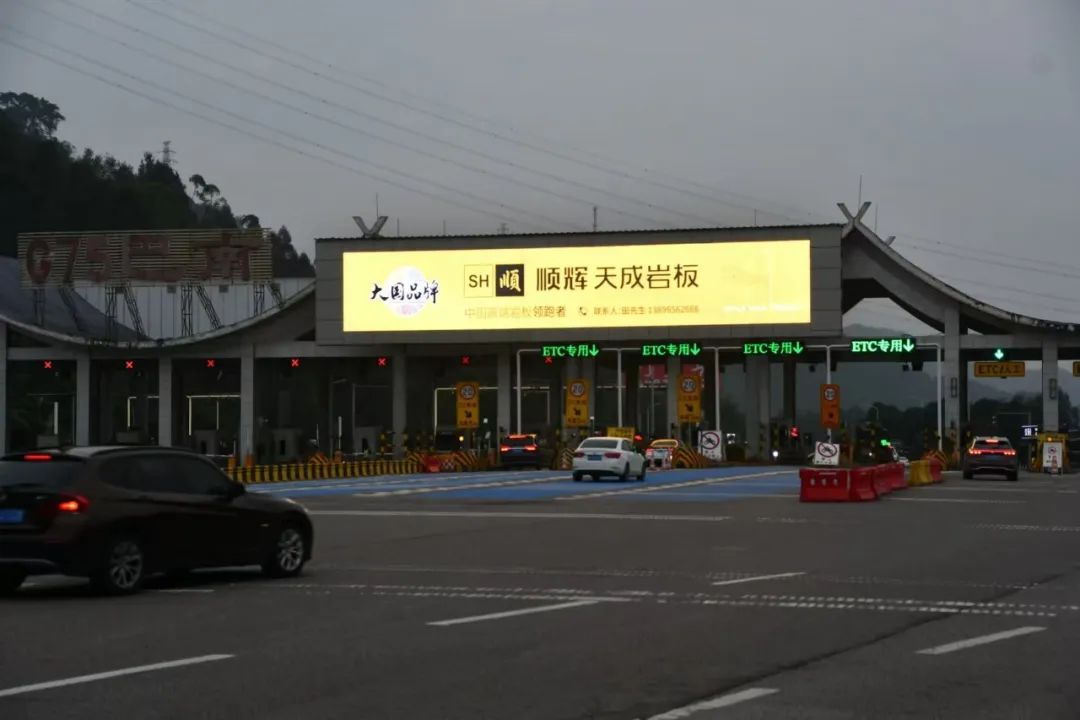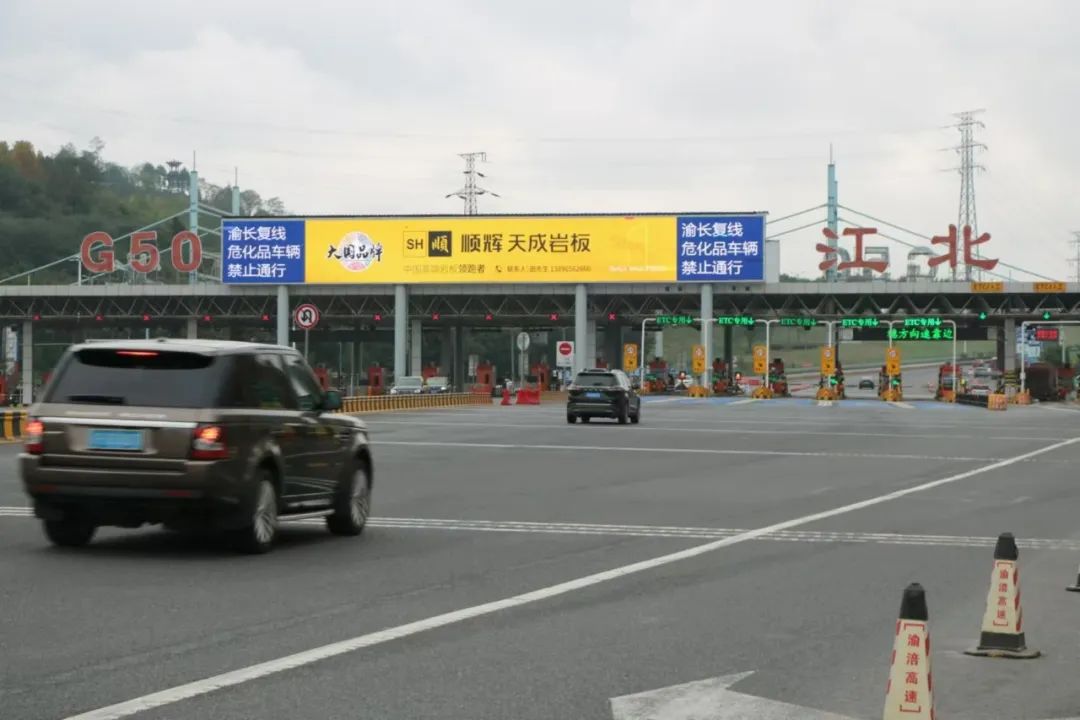 此次顺辉天成岩板的高速广告投放,精心布局。选择了四川重庆境内的G50江北高速、G65巴南高速、G75巴南高速、G93高新高速的收费站广告位,以及金山立交高炮广告位。