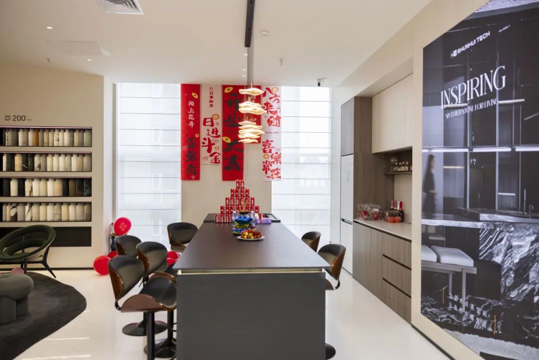 顺辉天成岩板北京运营中心,以东方美学和大漆艺术为载体,通过打造涵盖商业、生活、文化与艺术等多元应用场景,全方面展示岩板的应用优势,为消费者带来沉浸式的高端家居购物体验。