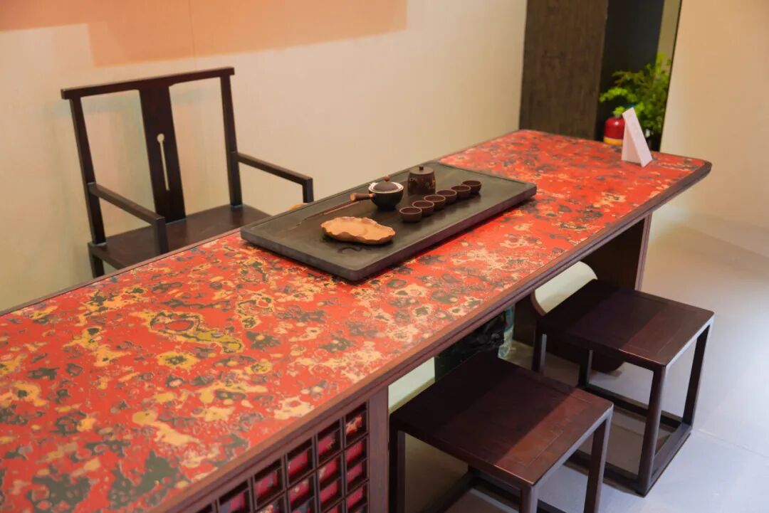 在这里,大漆的沉静与茶香的清冽相遇,完成一场跨越千年的对话。漆为茶筑就仪式场域,茶为漆注入生命温度,而这份静谧与暖意,正是归家中最珍贵的馈赠,藏进每一寸日常,温润每一个晨昏。